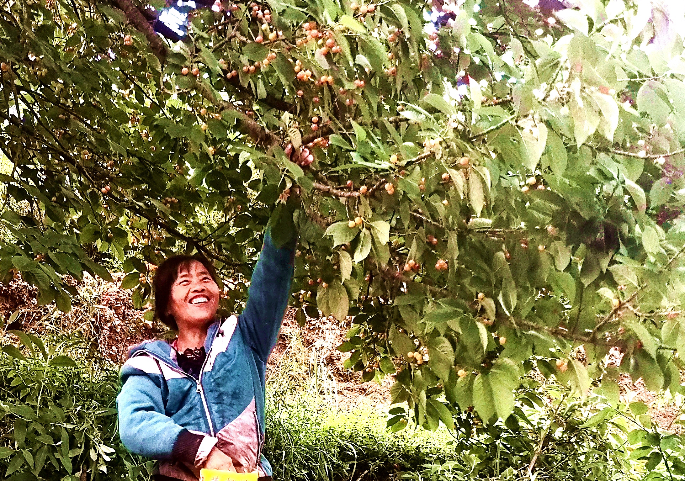 初夏时节,鲜艳欲滴的樱桃洒满了世界杯足球博彩 定点帮扶的广元市朝天区沙河镇鱼鳞村的山坡,黄的、粉的、红的,颗颗饱满,闪烁着喜悦的光芒,在枝头欢呼跳跃。在世界杯足球博彩 派驻鱼鳞村工作队帮扶干部的帮助协调下,今年鱼鳞村的樱桃产量增加了,品质提升了,从树上摘下来第一时间就被装上了冷藏运输车,口感更加鲜甜。